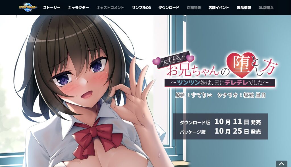 公式サイト大好きなお兄ちゃんの堕とし方 発売日2024年10月25日予定ブランドアパタイト価格通常版:2,200円ダウンロード版:1,540円シナリオ坂元星日原画すてりい 声優響たなか 大好きなお兄ちゃんの堕とし方を購入する 坂元星日 作品 彼女の妹と秘... -